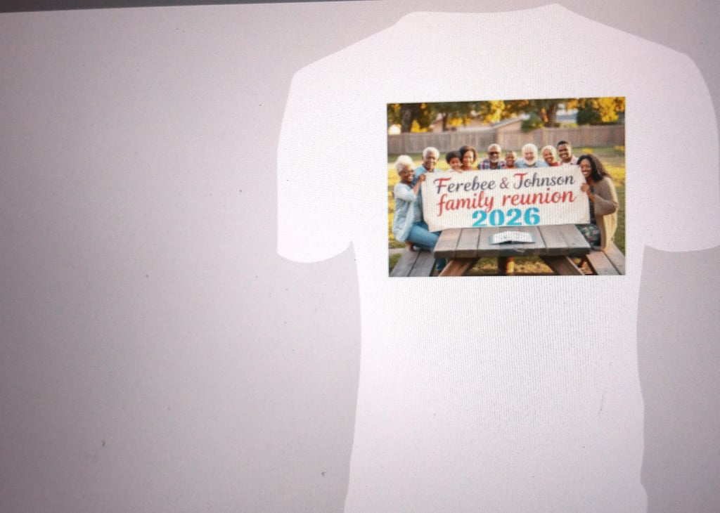 Tell/Describe what you want,photo,buildings,outdoors,animals,cars on your T-shirt etc, you will have to order a minimum of 5 shirts- if not in stock and will take up to 10 days for delivery!